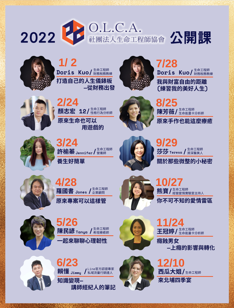 2022協會活動行事曆 還沒加入社團法人生命工程師協會嗎?趕快 申請加入 生命工程師協會公開課: 講師:Jason ZECK Lee主題:情緒週期之後 Back to BEING時間:2022年12月24日 10:00am-12:00pm 和 2:00pm-4:00pm地點:ZOOM